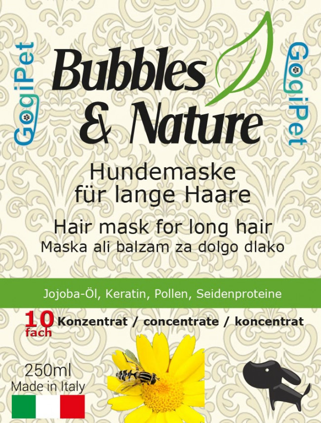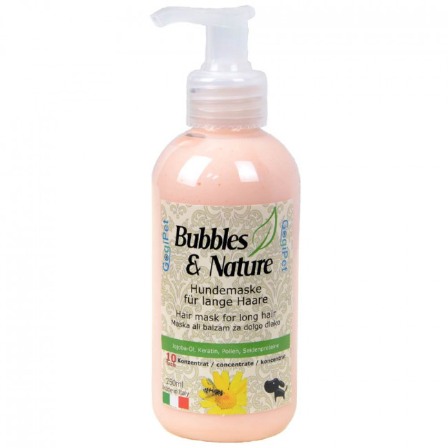 Maska ali balzam z jojoba oljem, keratinom, cvetnim prahom in proteini svile je namenjena negi dolge ali sprijete in zavozlane dlake. Uspešno pomaga pri mehčanju in razvozlavanju dlake, prepreči novo sprijemanje dlake, vrača naravno vlažnost in prožnost dlaki in koži. Priljubljena je predvsem pri negi dolgodlakih in razstavnih maltežanov, Yorkshirskih terierjev, Shih Tzujev, Bradatih škotskih ovčarjev in drugih pasem z dolgo dlako nagnjeno k sprijemanju. Maska ali balzam za nego dolge ali sprijete dlake psov nanesemo na mokro dlako, pustimo učinkovati 5 min in speremo. Tako negovana dlaka je prožna, se ne sprijema in vozla, enostavno češe in razčesava in ima na občutek večjo gostoto. Maska tudi ščiti dlako pred novo umazanijo in vozlanjem ter sprijemanjem. Maska je 10-kratni koncentrat, kar pomeni, da iz 250 ml koncentriranega balzama dobimo 2,50 l normalnega balzama za nego psov. Balzam ne povzroča alergičnih reakcij.