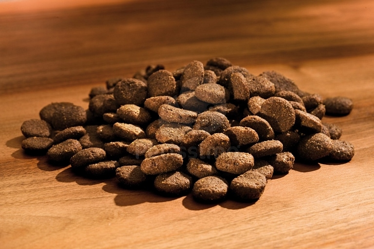 Sestavine: Koruza, perutninske beljakovine*)**), riževa moka, perutninska maščoba, lososova moka, ribja moka, jagnječje beljakovine*, hemoglobin*, sončnično olje, pesni rezanci (melasa) (razsladkana)*, jabolčne tropine* (0,6%), repično olje, posušena cela jajca, natrijev klorid, kvas*, kalijev klorid, morske alge* (0,15%), laneno seme (0,15%), školjčno meso* (0,02%), mlečni osat, artičoke, regrat, ingver, brezovo listje, kopriva, kamilica, koriander, rožmarin, žajbelj, golostebelni sladki koren, timijan, kvas (ekstrahiran)* (Posušena zelišča skupaj: 0,14%). (* posušeno, ** delno hidrolizirano) Prebavljiva energija: 1650 KJ/100g; 3950 Kcal/kg”