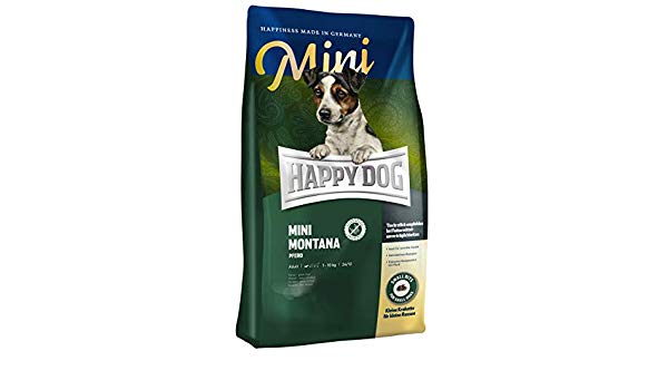 Happy Dog Mini Montana je popolna hrana za odrasle pse, težke do 10 kg, z normalnimi energetskimi potrebami. Ta receptura je idelana za zahtevne gurmane, ki iščejo nekaj posebnega, ali pa so preprosto izbirčni. Receptura brez žitaric je še posebej primerna za občutljive pse srednjih in velikih pasem , saj vsebuje kombinacijo konjskega mesa in krompirja brez glutena, in jo kot tako za pse z intolerancami priporočajo veterinarji. Vsebuje dragocene omega-3 in omega-6 maščobne kisline, ki so zelo pomembne za kožo in dlako.