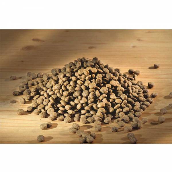 Sestavine: Račje beljakovine* (21 %), koruzna moka, koruza, riževa moka, lososova moka (5 %), hidrolizirana jetra, melasa iz sladkorne pese (sladkor odvzet)*, perutninska maščoba, sončnično olje, jabolčne tropine* (0,5 %), repično olje, jajce v prahu, natrijev klorid, kvas*, kalijev klorid, morske alge* (0,15 %), lanena semena (0,15 %), meso školjk* (0,05%), tropine rdečega grozdja (0,02 %), bezgove jagode, pegasti badelj, artičoka, regrat, šetraj, majaron, ingver, rožmarin, žajbelj, timijan, brezovi listi, kopriva, plodovi vrtnega janeža, bazilika, plodovi koromača, bezgovi cvetovi, cvetovi sivke, koriander, kamilica, brestovolistni oslad, sladki koren, kvas (ekstrahiran)* (suhih zelišč skupaj: 0,28%). *posušen”
