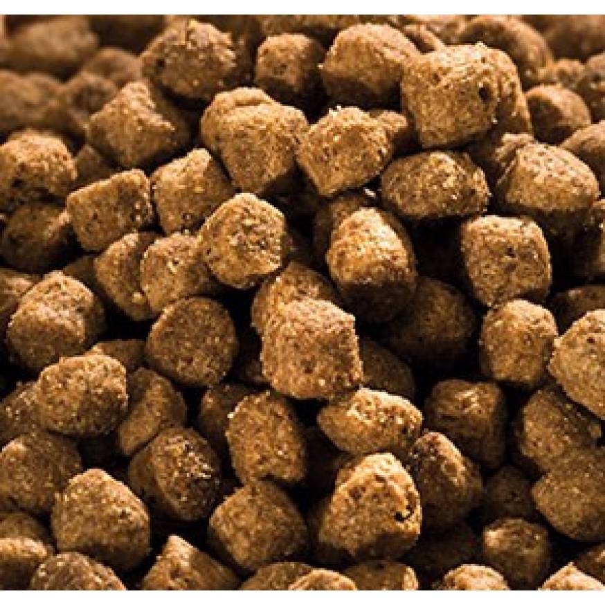Sestavine: Perutninske beljakovine* (31%), perutninska maščoba, krompirjevi kosmiči, koruzna moka, pšenica, koruza, ocvirki, ribja moka, rezanci sladkorne pese – melasa** (sladkor odvzet), lignoceluloza, sončnično olje, jabolčne tropine**, natrijev klorid, repično olje. (*sušeno, delno hidrolizirano, **sušeno).