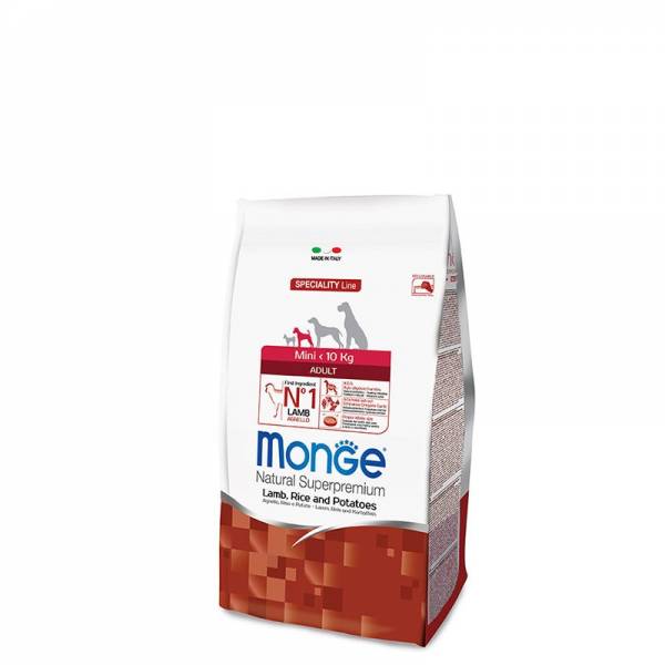 Monge Natural Lamb, Rice & Potatoes je namenjena odraslim psom, kateri potrebujejo visoko prebavljivo hrano, ki ne povzroča prebavnih težav. Vsebuje tudi beljakovine visoke biološke vrednosti pridobljene iz krompirja katere skupaj z vitaminom C, naravnim antioksidantom, pomagajo preprečevati staranje kože. Pravilna vsebnost biotina in cinka skupaj z optimalnim razmerjem med Omega-3 in Omega-6 maščobnimi kislinami zagotavlja zdravo kožo in sijočo dlako. Hrana je lahko prebavljiva in pripomore k ohranjanju odličnega zdravja vašega psa slozi celo njegovo življenje.