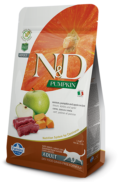 Natural & Delicious Pumpkin Formula je nova linija hrane brez žit, razvita v Italiji, z edinstvenimi prehranskimi lastnostmi: Vitamini vrhunske kakovosti: zahvaljujoč sistemu z vakuumskih oblaganjem-edinstveno tehnologijo, ki omogoča dodajanje vitaminov po toplotni obdelavi-vitaminom zagotavlja daljšo obstojnost.