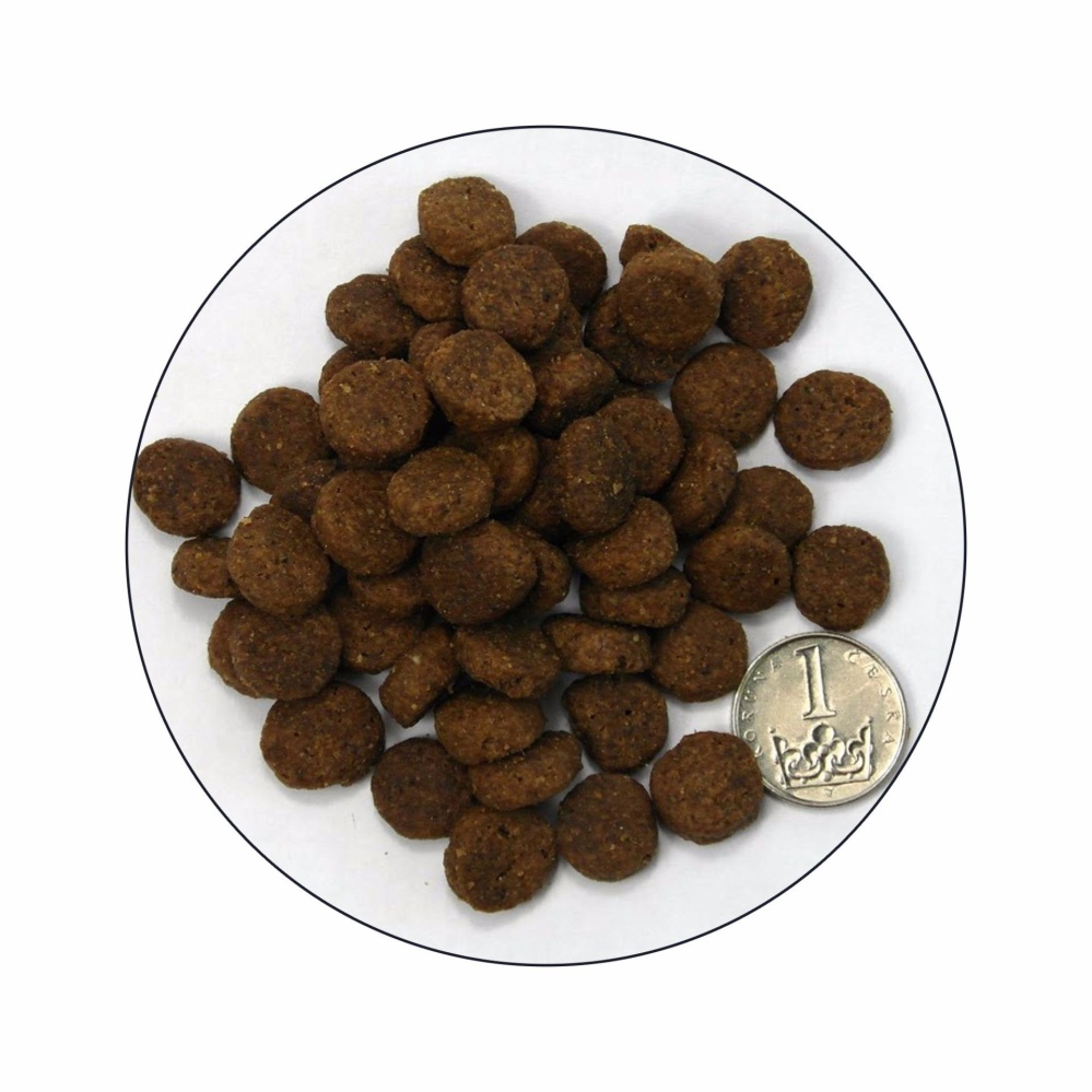 Vsebnost analitskih sestavin: surove beljakovine min. 25%, surove maščobe min. 15%,