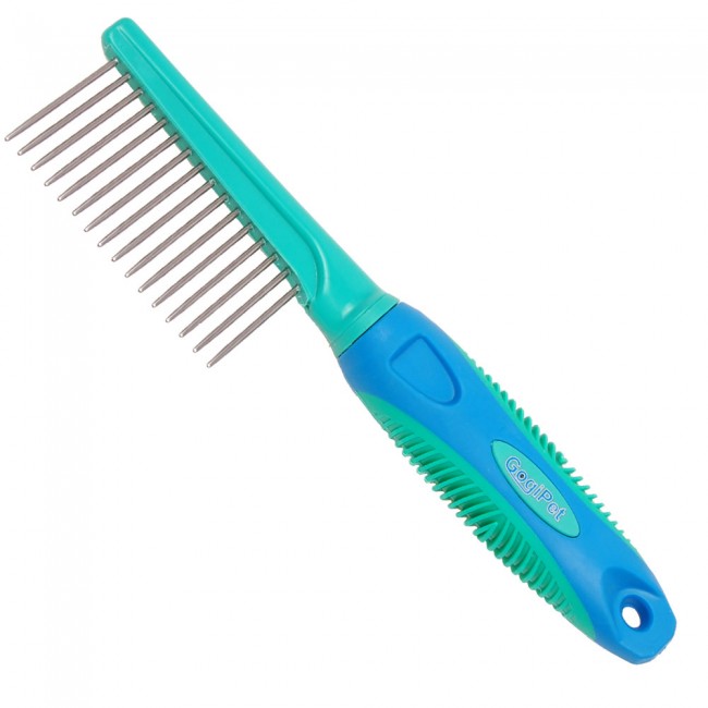 GogiPet® glavnik za nego psov z redko nasajenimi, 16 zobmi je primeren za česanje dolge in kratke goste dlake psov. Glavnik kožuh psa dobro prezrači in mu podari svež videz. Redko nasajeni zobje so brez ostrih robov z lepo zaobljenimi konicami, zato glavnik gladko drsi skozi dlako ne da bi pri tem poškodoval kožo ali dlako.