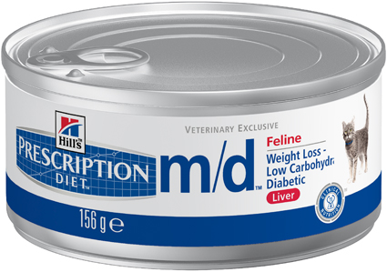 Hill’s Prescription Diet Feline m/d – z jetri. Dietetična hrana za mačke Prescription Diet™ m/d™ Feline je popolna dietetična hrana za mačke za uravnavanje krvnega sladkorja (diabetes mellitus) in zmanjšanje prekomerne telesne teže. Ta dietetična hrana vsebuje nizek delež ogljikovih hidratov, ki hitro sproščajo glukozo in ima nizko energetsko gostoto.