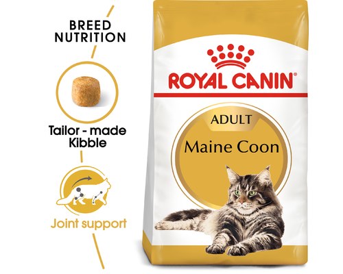 Maine Coon jemlje hrano z zgornjo površino jezika in jo nato celo pogoltne, ne da bi jo pri tem prežvečila. Velikost, oblika in tekstura briketov pa omogočajo drobljenje hrane in s tem upočasnitev prebave.
