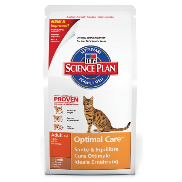 Hill’s™ Science Plan™ Feline Adult Optimal Care™ with Lamb je formulirana za podporo optimalni telesni pripravljenosti, s klinično preizkušenimi antioksidanti, čistimi beljakovinami in okrepljena z omega-3 maščobnimi kislinami.