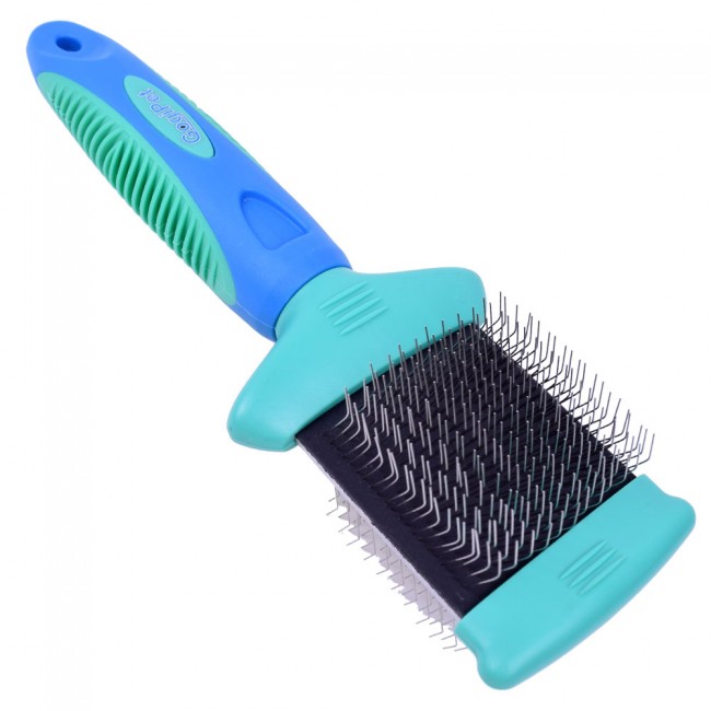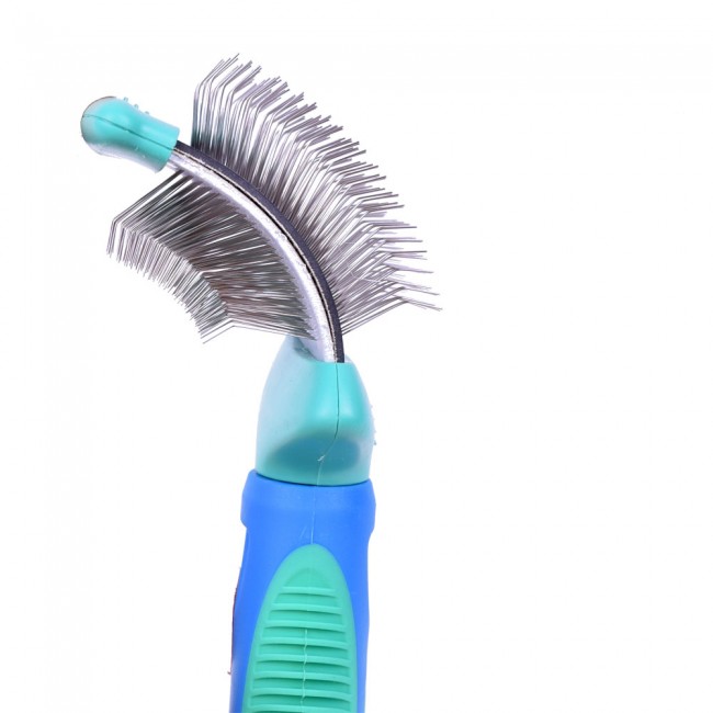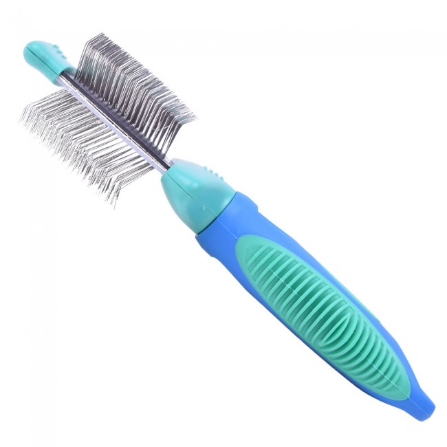 - • dvostranska krtača – groba stran za razčesavanje sprijete in zvozlane dlake, mehka stran za redno osnovno česanje