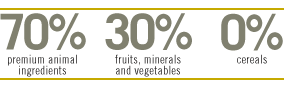 Analitična sestava: surove beljakovine 44.00%; surove maščobe in olja 20.00%; surove vlaknine 1.80%; vlaga 8.00%; surovi pepel 8.50%; kalcij 1.50%; fosfor 1.30%; magnezij 0.09%; omega‐6 3.10%; omega‐3 1.40%; DHA 0.80%; EPA 0.50%; glukozamin 1200mg/kg; hondroitin sulfat 900mg/kg.