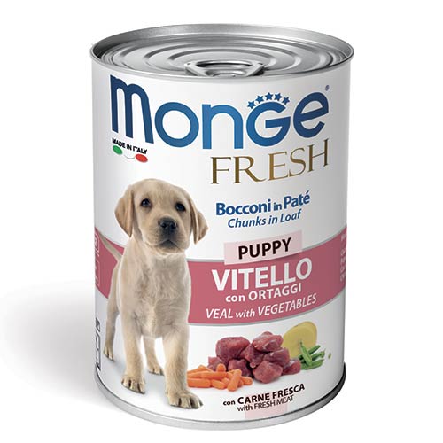 Meso in derivati (sveža teletina 20% in jetra 16%), zelenjava (korenje, grah in krompir 6%), žita, olja in maščobe, minerali.